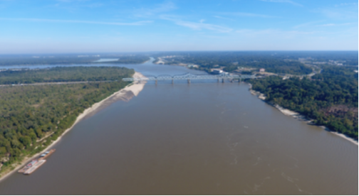 密西西比州维克斯堡附近的一张无人机照片,从I-20大桥的东北方向可以看到Yazoo河。