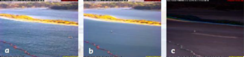 2)时间曝光映像(b)在碎波时平均自然转调,揭示图像明亮强度模式,并“删除”了来自相机视野的移动物体,如船舶,车辆和人;