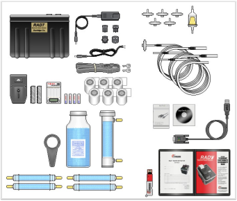 便携式测氡仪RAD7是美国DURRIDGE公司生产的一款手提式氡气连续监测仪,不仅可以测量空气中的氡,选配土壤探头和水探头可同时测量水和土壤中的氡。以下是测氡仪的详细介绍、标准配置清单及选配件。