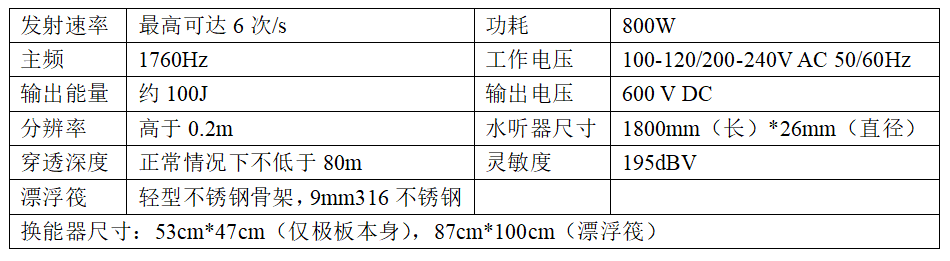 C-Boom浅地层剖面仪,其震源采用独特的LVB低电压技术(仅600VDC),仪器可靠性高,震源重量小(仅12Kg)。水下发射装置总重量仅为30Kg;仪器操作简单,尤其适合于浅水区域的剖面调查。具有重量轻、便捷、安全的特点。无论是小汽艇还是大型船只,使用都非常方便。该系统可在100m水深处工作,穿透底层超过80m,分辨率为20。